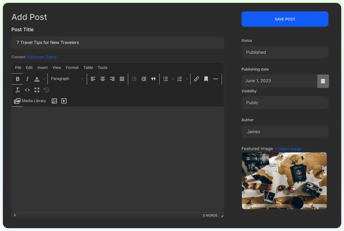 No developer or designer required. Publish your first blog post in minutes.