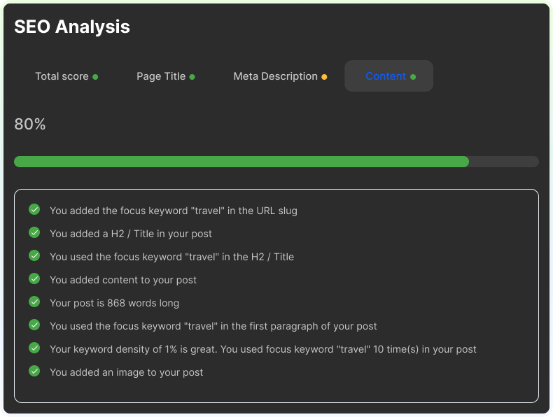 - Our built-in SEO Analyzer provides real-time feedback to enhance your blog content for higher rankings
